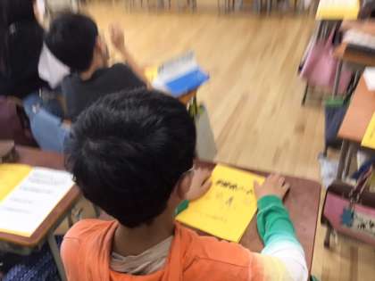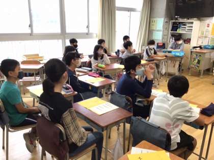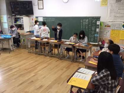 学級会の時間です。お楽しみ会の企画について話し合っています。楽しいゲームにするためには、どうやってウソを混ぜるかがポイント。どんなゲームなのか、気になるところですね。