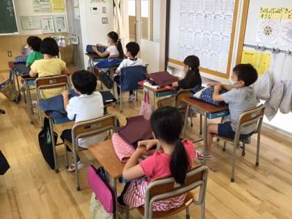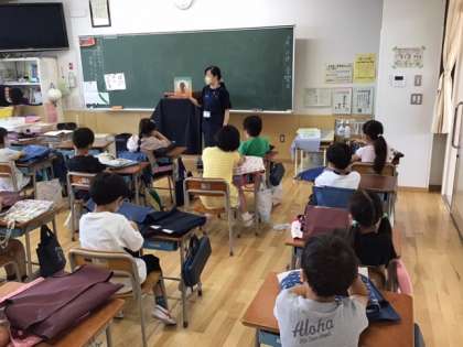 国語の時間です。司書の先生から、課題図書「みずをくむ プリンセス」の紹介がありました。