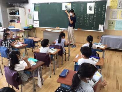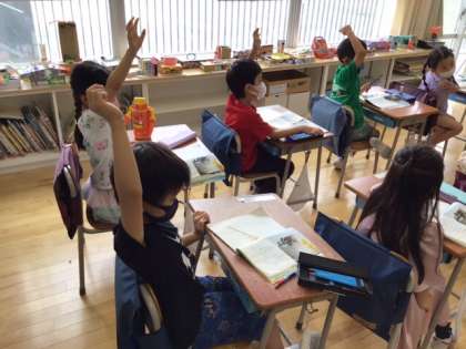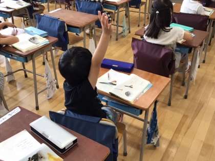 国語の時間です。「くちばし」おうむのくちばしについて考えています。