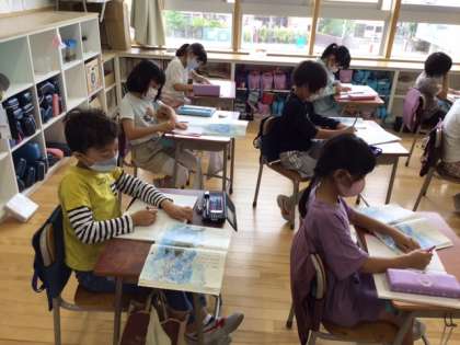 国語の時間です。「スイミー」みんなが大好きなお話ですね。楽しく学習を進めましょう。