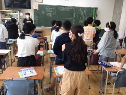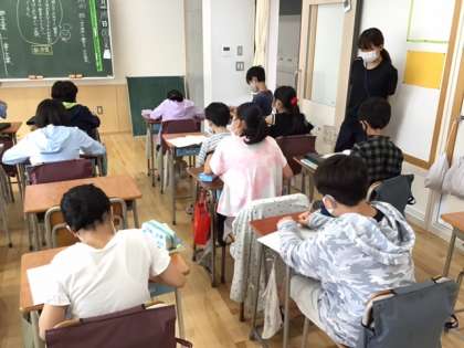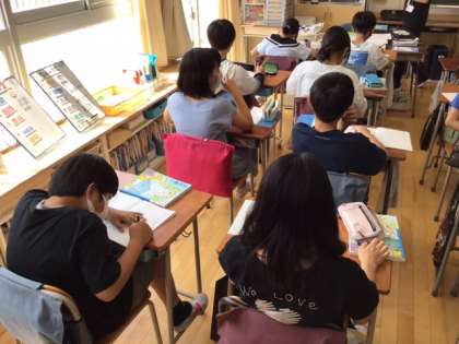 国語の時間です。話し言葉と書き言葉の特徴をまとめ、その違いを発表しています。