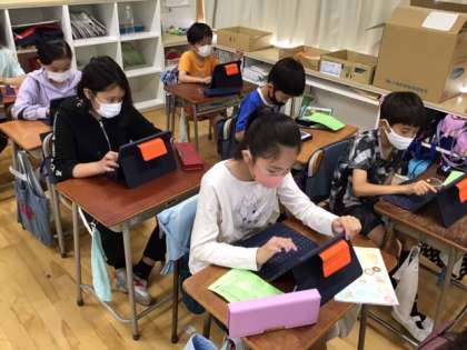 朝の様子です。キュビナでどんどん自分の学習を進めています。