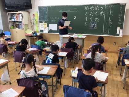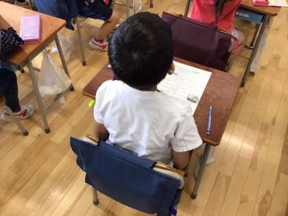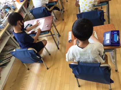 学級活動の時間です。小学校に入学して、初めての「学校生活のアンケート」をしています。