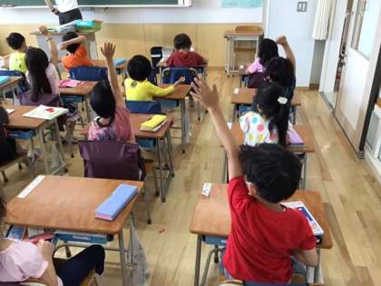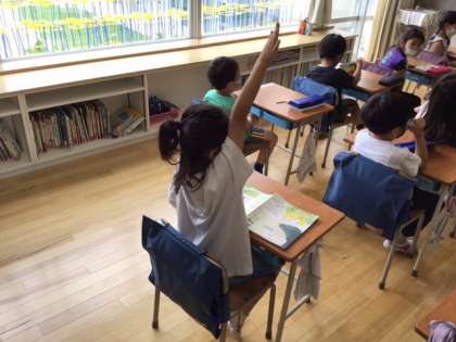学級活動の時間です。転校するお友達のお別れ会について話し合っています。