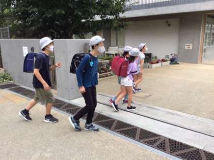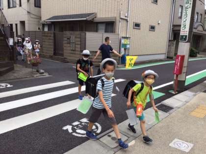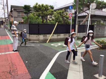 今日は、正門側の登校風景です。毎日、地域の方が見守りをしてくださっています。