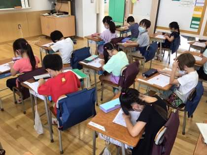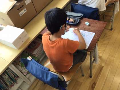 国語の時間です。「ふ」を練習しています。上手に書けるかな?