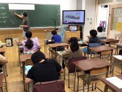 算数の時間です。「小数のわり算」今日から新しいグループになりました。