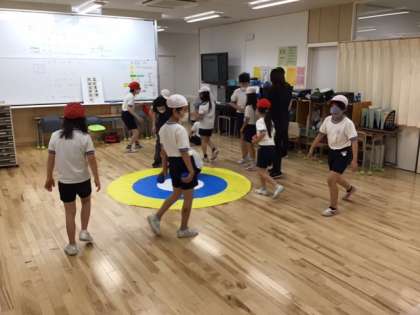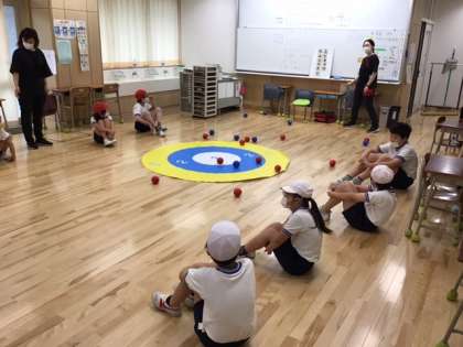体育の時間です。あいにくの雨で校庭は使えませんでしたが、教室でのボッチャが盛り上がりました。