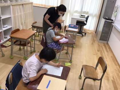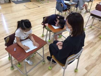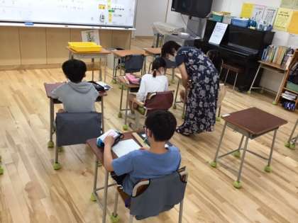 日課表をしっかり書いています。今日はプールに入れるでしょうか?