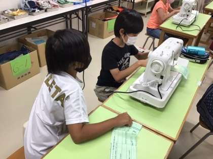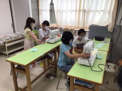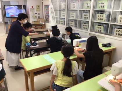 家庭科の時間です。ミシンの学習です。基本が大事ですね。
