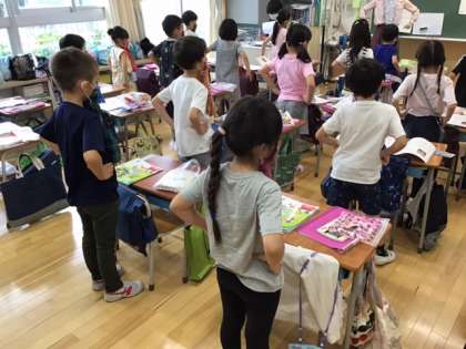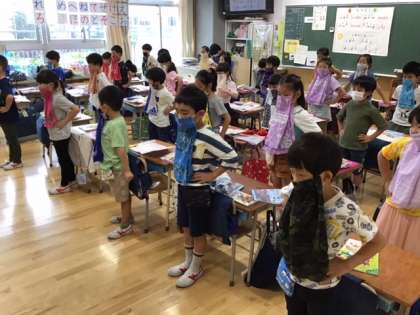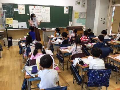 音楽の時間です。ドレミの体操もしっかり覚えました。
