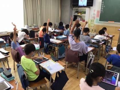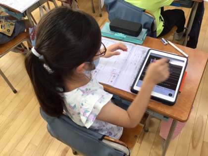 国語の時間です。漢字の学習に取り組んでいます。語彙をたくさん増やしています。