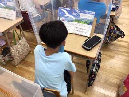 音楽の時間です。「つばさをください」自分の夢を思い描きながら、想いを込めて歌います。