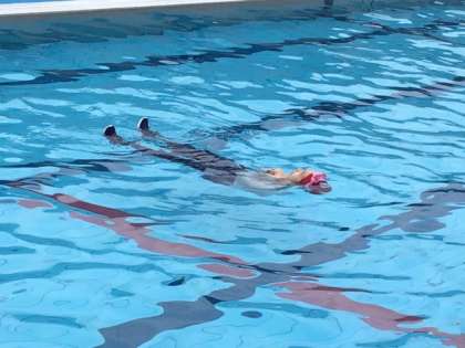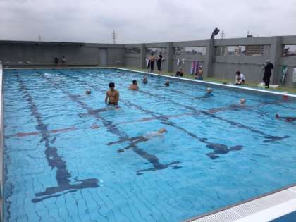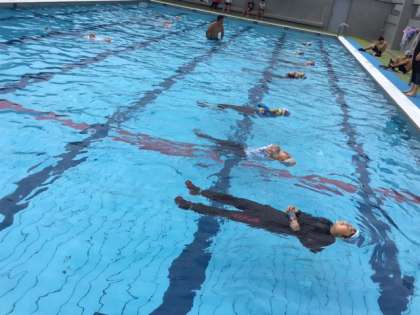 体育の時間です。小さなペットボトルがあるだけで、こんなに浮力が違うのですね。