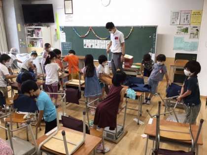 一生懸命に大そうじをしています。明日からは、夏休みですね。