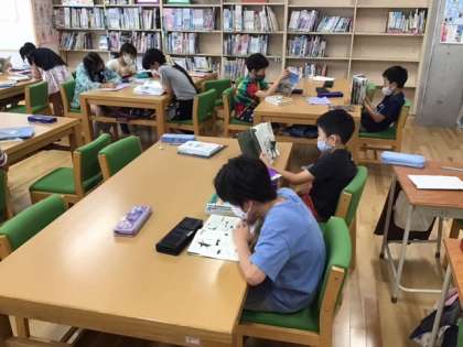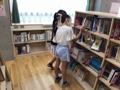 夏休みの本の貸し出しです。たくさん本を読んでくださいね。