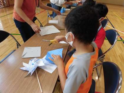 ビーズストラップ、缶バッジ、風車、キラキラメダル、ヨーヨーつりなどができます。