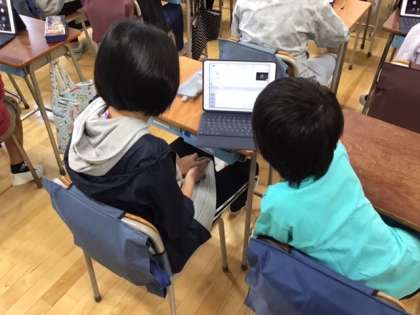 6年生もオンラインの確認をしています。アイコンに工夫がありますね。