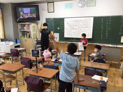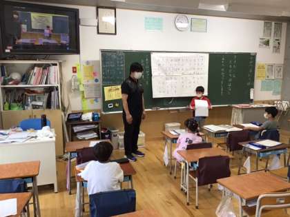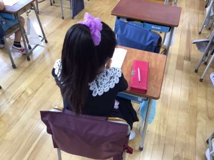 国語の時間です。「ききたいな ともだちのはなし」夏休みの出来事を発表しています。