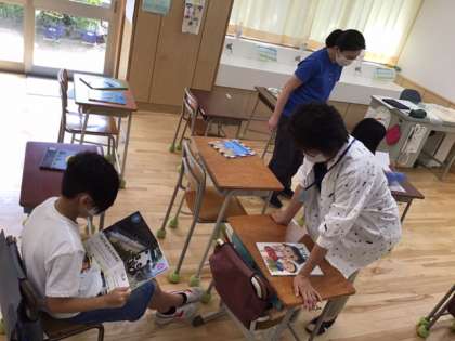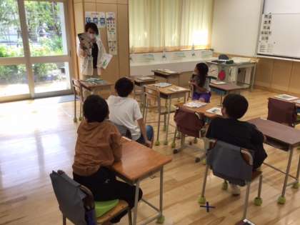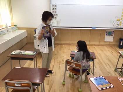 読書の時間です。松本先生がいろいろな本を紹介してくださいました。お気に入りの本はあったかな?