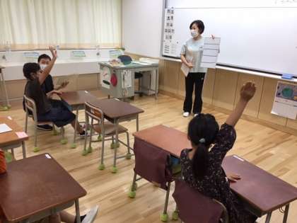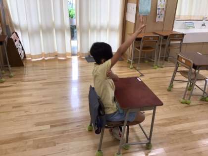 「明日、給食のメニューを書いてくれる人はいますか?」みんな積極的です。