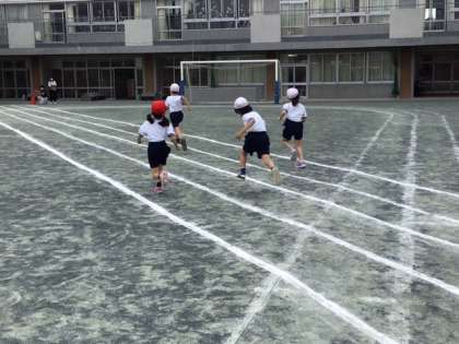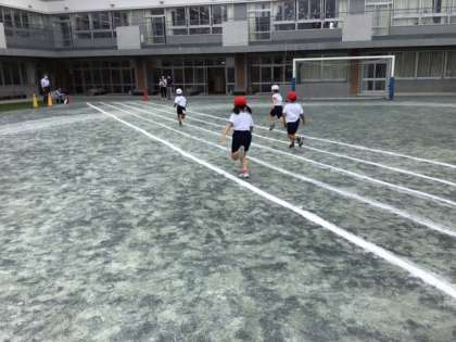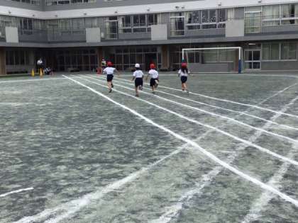 体育の時間です。50メートル走に挑戦しています。みんな一生懸命です。