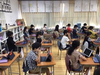学級活動の時間です。1学期の振り返りをもとに、2学期のめあてや改善点について話し合っています。