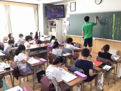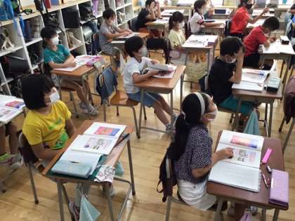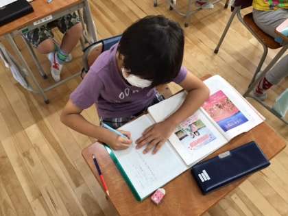 国語の時間です。2つのポスターを見比べて、気づいたことなどを発表しています。