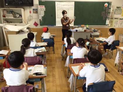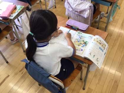 算数の時間です。「水のかさ」いろいろな水のかさを協力しながら調べます。