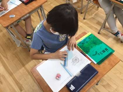 算数の時間です。どうやったら円の中心が見つけられるかな?