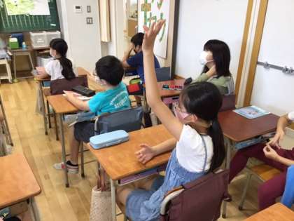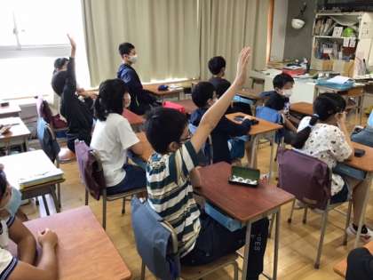 学級活動の時間です。意見を出し合いながら、今週のめあてを決めています。