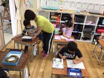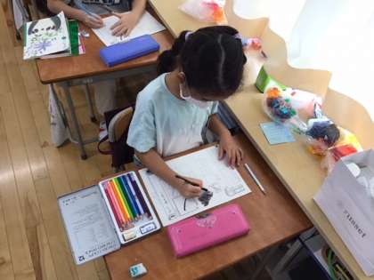 国語の時間です。カタカナの練習です。楽しそうに学習しています。