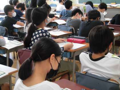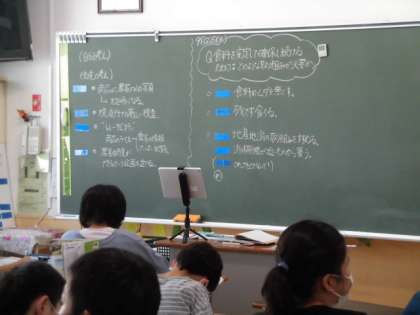 社会の時間です。「食料を安定して確保するためには・・・」。必要なことを考え、意見を交流していました。