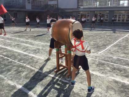 校庭での練習風景です。応援団にかける思いが伝わってきます。