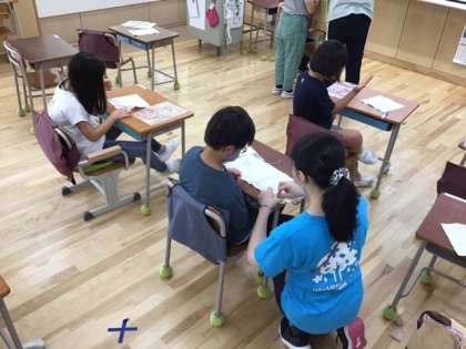 生活単元の時間です。手芸に取り組んでいます。高学年は、伝統の柄に挑戦しています。