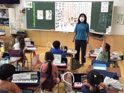 音楽の時間です。「ぶんぶんぶん」ドレミで歌えるようになりました。