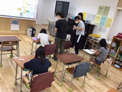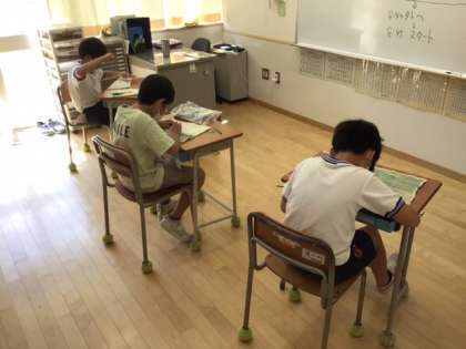 グループ学習の時間です。少しずつ難しい課題に挑戦しています。
