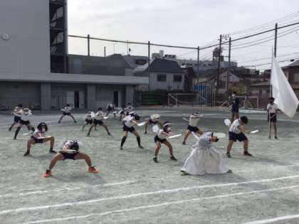 通し練習を行いました。気持ちが一つになり、素晴らしい応援になっています。