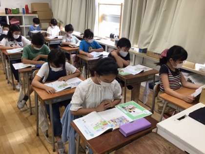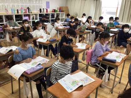 道徳の時間です。「雨のバスていりゅう所で」みんなが気持ちよく生活するためには、どのようなことに気をつければよいのかを考えています。