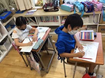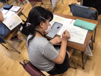 社会科の時間です。玉川上水や分水ができて、武蔵野台地はどのように変わったのかを調べています。