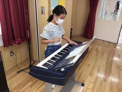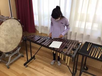 音楽の時間です。クラス合奏「ルパン三世のテーマ」に向けて、練習に取り組んでいます。