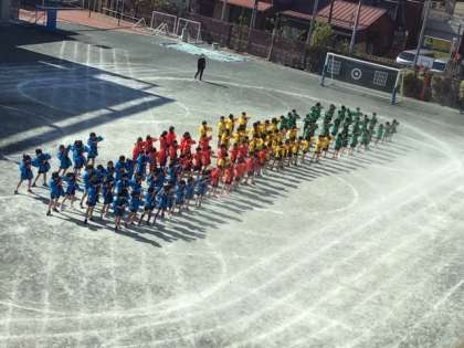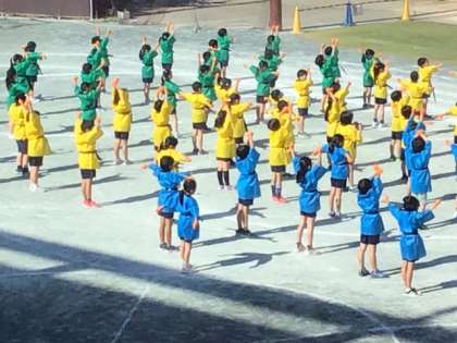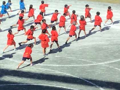 運動会演技の練習風景です。衣装もつけて、本番を想定して練習しています。