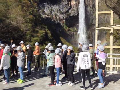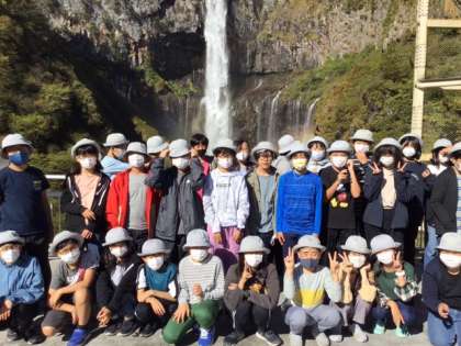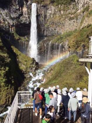 華厳の滝です。水の量が多く、迫力があります。素晴らしい景色です。