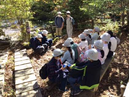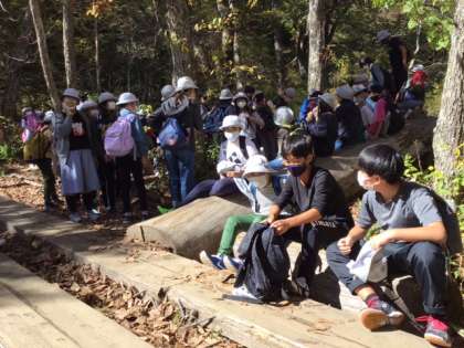 湯滝から歩き続けて、休憩ポイントに到着しました。水分を補給して、後半もがんばりましょう!