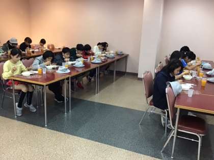 お昼ごはんは、カレーライスです。食べ終わったら、東京へ向かいます。予定通りの出発となりそうです。