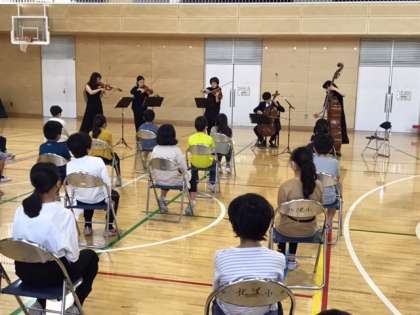 今日は、音楽鑑賞教室です。東京フィルハーモニーのみなさんが、下北沢小学校に来てくださいました。音楽の素晴らしさを感じてほしいと思います。