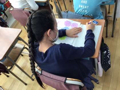 国語の時間です。「よりよい学校生活のために」単元の振り返りをしています。「振り返り」は、とても大事な活動です。