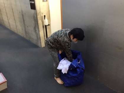 朝会までに部屋の片付けを終わらせようと、協力して動いています。