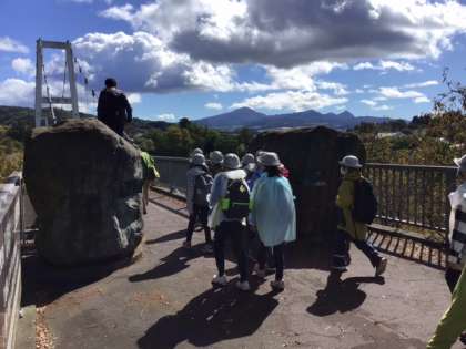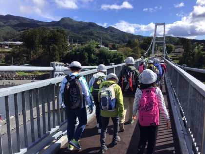 「ふれあいはし」を渡り、村めぐりもゴールに近づいています。
