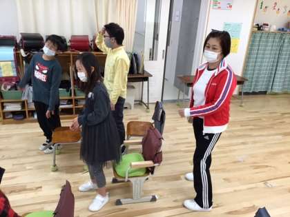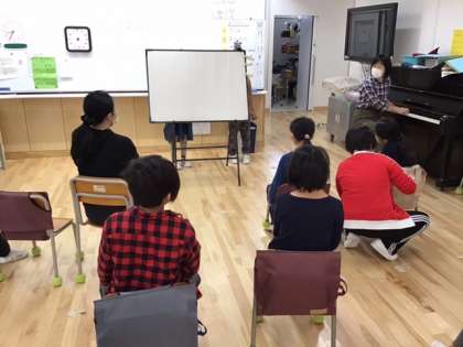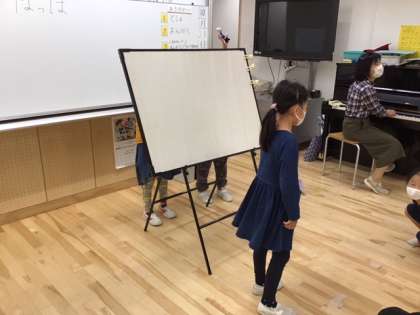 音楽の時間です。歌に合わせて、指人形がダンスをしています。